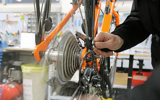In unserer Meisterwerkstatt führen wir Reparaturen und Inspektionen bei Fahrrädern aller Marken und Hersteller durch.